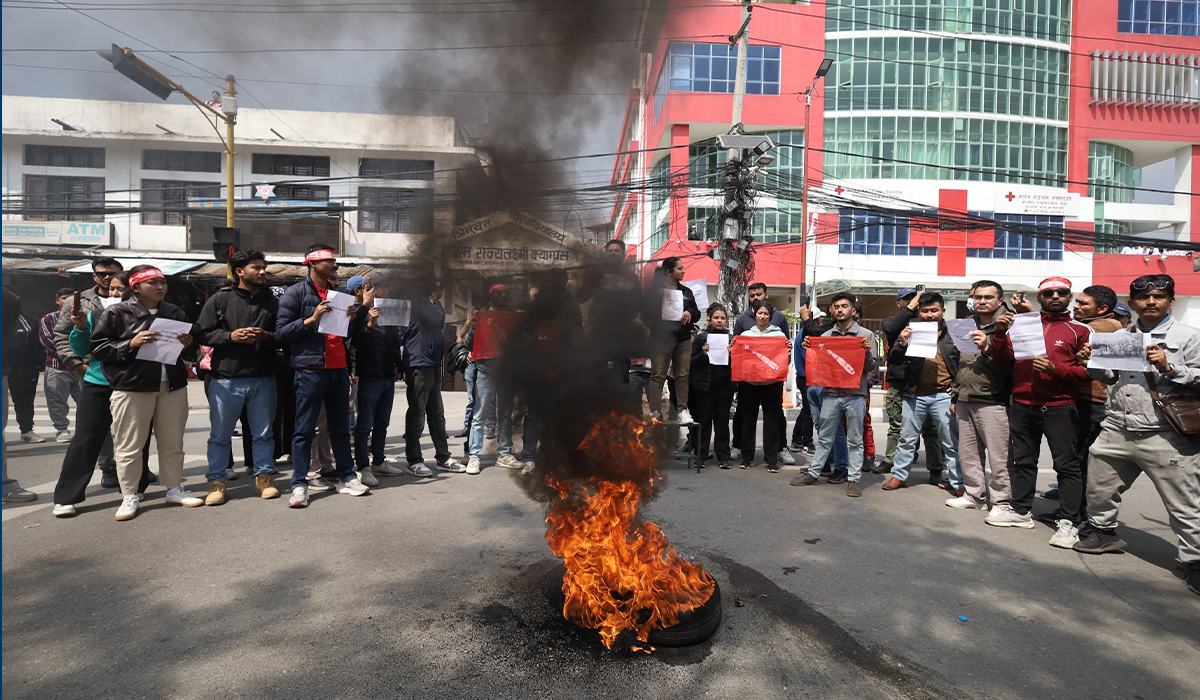 KATHMANDU: All Nepal National Free Students Union, the student wing close to the Communist Party of Nepal (Unified Marxist–Leninist), staged a protest by burning tyres at Bhrikutimandap on Saturday.
