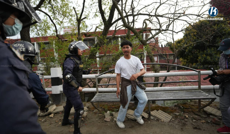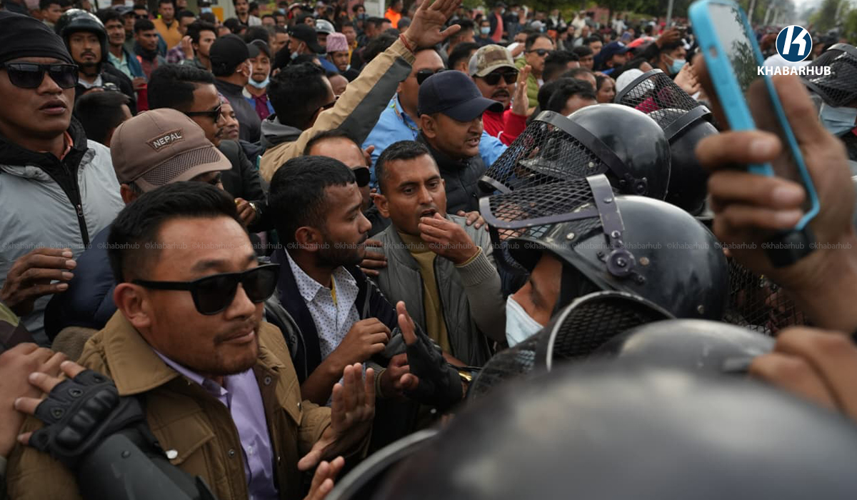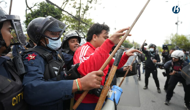 KATHMANDU: Clashes broke out between supporters of the Communist Party of Nepal (Unified Marxist–Leninist) and police in the Babarmahal area during a protest demanding the release of party chair KP Sharma Oli.