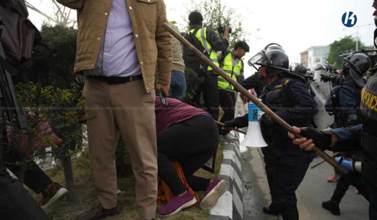 The confrontation occurred on Sunday as UML cadres marched from Maitighar Mandala toward New Baneshwor.