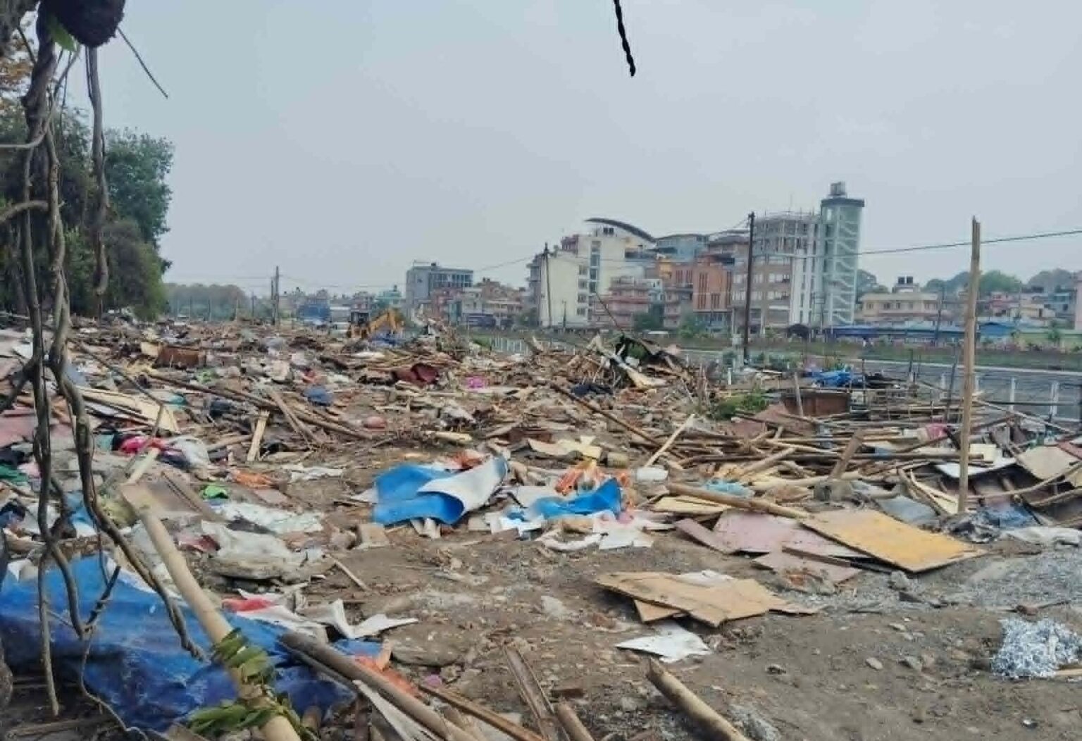 At 52, Kamala says she has been left with neither home nor ground to stand on after authorities cleared the settlement earlier this week. When the Khabarhub team reached the site on Monday, she was seen gathering scraps of tin and bamboo from the remains of her demolished shelter.