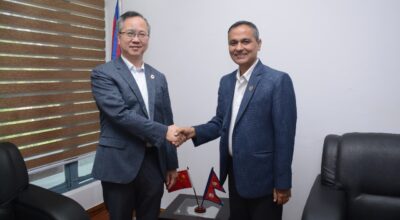 KATHMANDU: Home Minister Om Prakash Aryal and Chinese Ambassador to Nepal Chen Song held a…