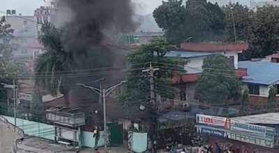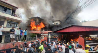 KATHMANDU: Demonstrators set fire to the Baneshwor Heights residence of Nepali Congress leader and former…