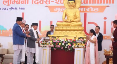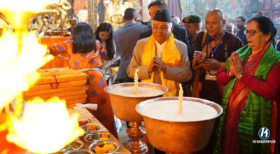 KATHMANDU: President Ram Chandra Paudel and his spouse Sabita Paudel conducted worship at Lhakhang monastery…