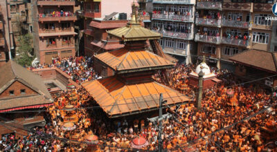 BHAKTAPUR: The vibrant Sindur Jatra featuring 32 khats (palanquin) is being celebrated with great enthusiasm…