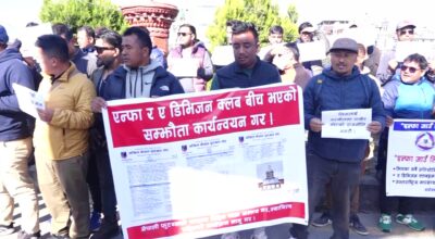 KATHMANDU: A Division football clubs staged a sit-in outside the ANFA Complex on Thursday, accusing…