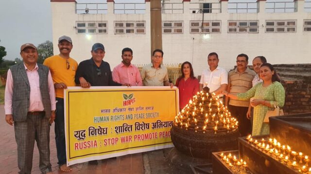HURPES lights oil lamps in Lumbini urging Russia to stop war in Ukraine for world peace