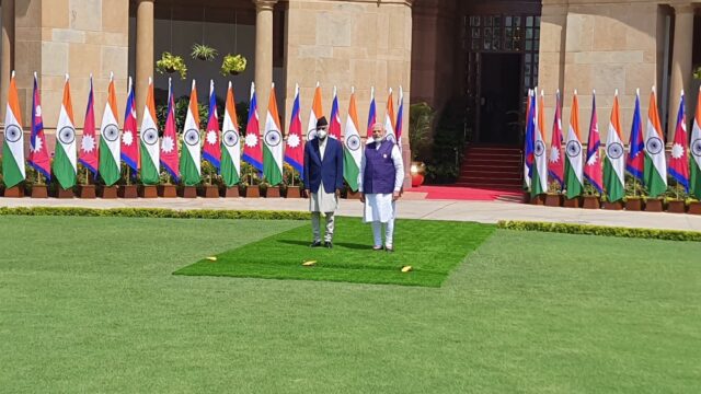 Prime Minister Deuba reaches Hyderabad House for a meeting with his Indian counterpart