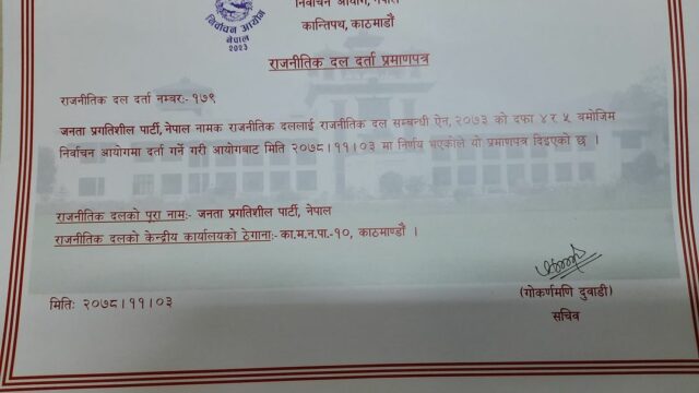 Hridayesh Tripathi’s PPP registered in Election Commission