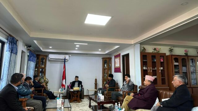 CK Raut reaches UML Chair Oli’s residence in Balkot