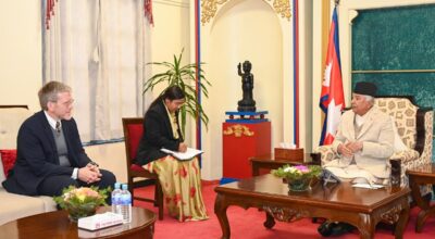 US Ambassador Dean R Thompson pays farewell call on President Paudel