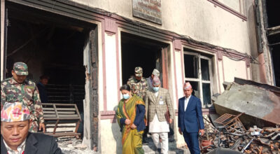 Former President Bhandari visits Supreme Court, inspects damage from Gen-Z protests