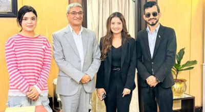 Singers Samikshya Adhikari and Eleena Chauhan meet Home Minister