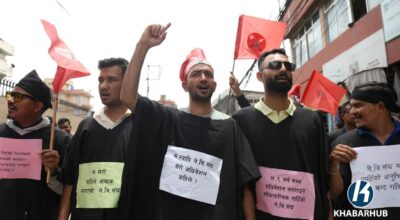 Dissident faction of Nepal Student Union protests at Nepali Congress HQ