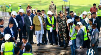 Prime Minister Oli inspects construction at TU Cricket Ground