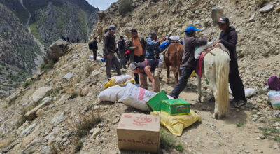 Relief materials delivered to flood and landslide victims in Til village after seven days