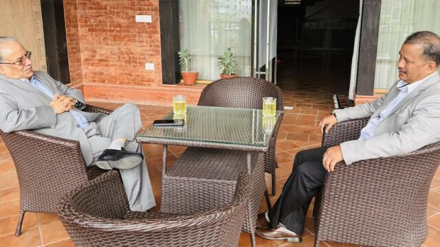 Bamdev Gautam meets KP Oli at UML office