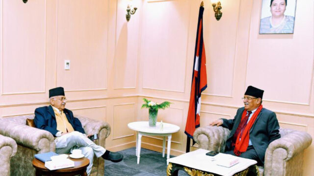 PM Dahal and UML Chairman Oli hold talks at Singha Durbar