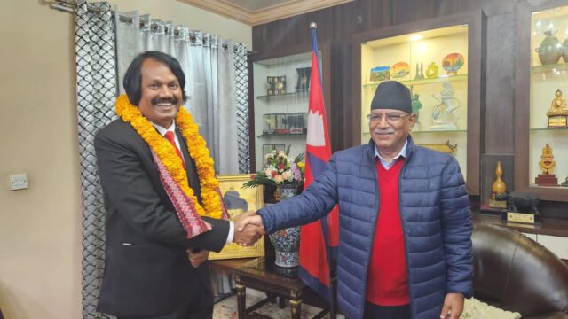 NC leader Khadka meets Prachanda to discuss on coalition government