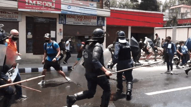 KATHMANDU: Police intervened in a protest staged by activists and traders in front of the