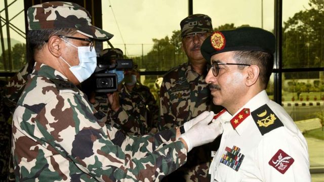 KATHMANDU: Chief of Army Staff (COAS) Purna Chandra Thapa conferred insignia on newly-promoted Major General