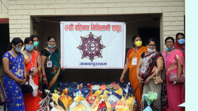 JANAKPURDHAM: The Sakhi Bahinapa Mithilani Samuha in Janakpurdham has donated relief materials to poor people