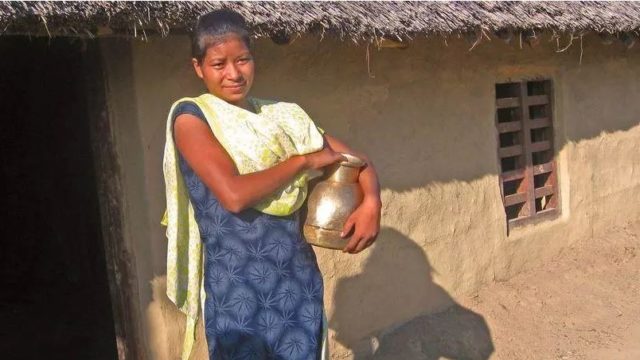 DEUKHURI: People in the neighborhood look with wonder when a woman donning a black coat and