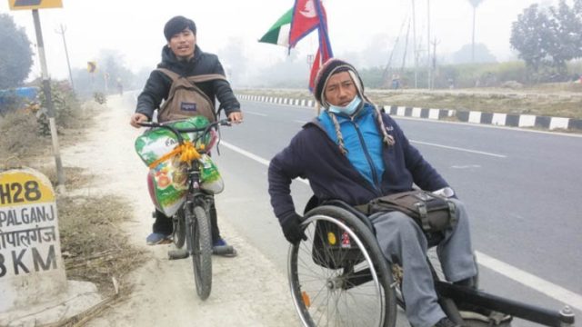 KANCHANPUR: Ram Bahadur Gole (Tamang), a wheelchair user, has set out for a Mechi-Mahakali tour.