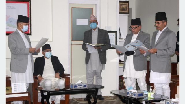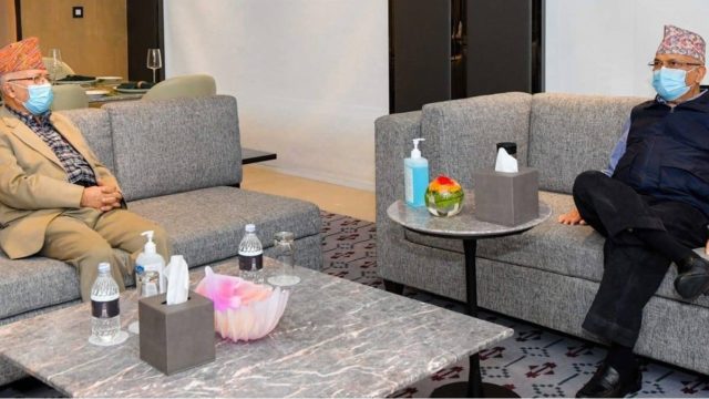 KATHMANDU: CPN-UML Chairman and Prime Minister KP Oli and senior leader Madhav Kumar Nepal held
