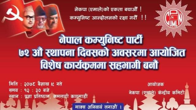 KATHMANDU: CPN-UML’s disgruntled Nepal-Khanal faction is going to celebrate the founding day of the Communist