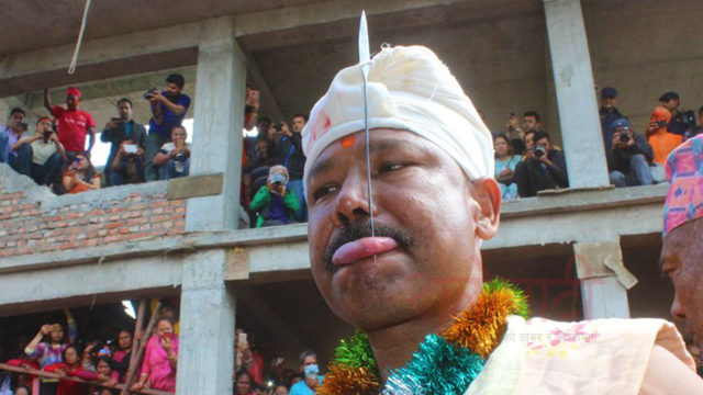 KATHMANDU: Traditional Tongue Piercing Festival is being observed at Bode in Madhyapur Thimi Municipality on