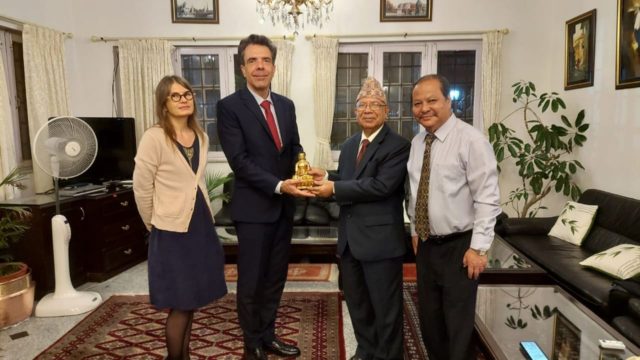 KATHMANDU: Senior CPN-UML leader Madhav Kumar Nepal has paid a farewell visit to outgoing French