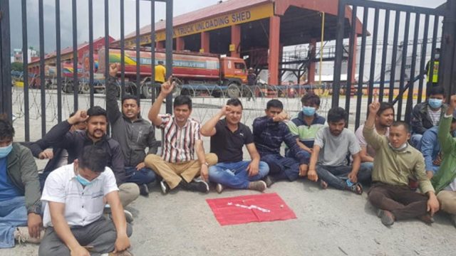 KATHMANDU: Five students’ unions today staged a sit-in at the Thankot Depot of Nepal Oil