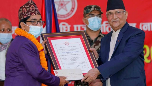 KATHMANDU: Dr. Sagar Regmi has received Science and Technology Youth Award on Friday. Prime Minister