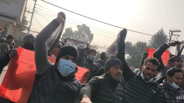 KATHMANDU: Demanding the announcement of the date of local elections, students affiliated with CPN-UML demonstrated
