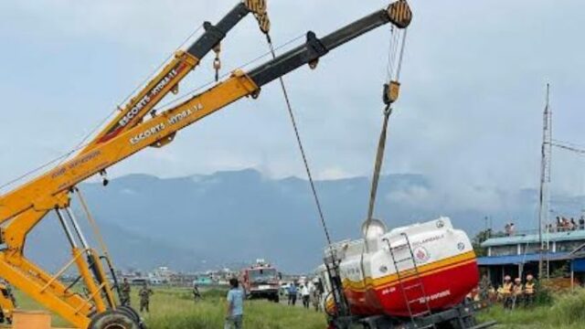 POKHARA: A fuel taker has turned sideways at the Pokharar Airport, bringing a halt to