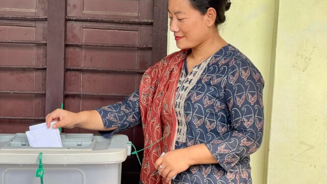 KATHMANDU: Mayoral candidate of CPN (Maoist Center) Renu Dahal has cast her vote in Bharatpur