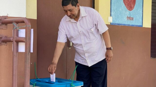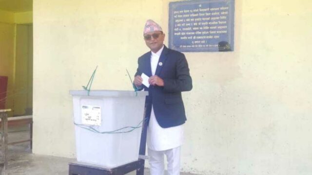 DAMAULI: Senior Nepali Congress leader Ram Chandra Poudel has cast his vote in the local