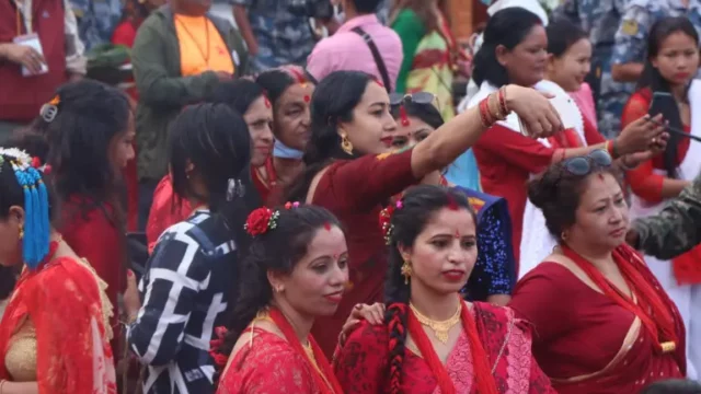 KATHMANDU: Women clad in red sarees have been thronging temples, particularly Pashupatinath Temple in Kathmandu,