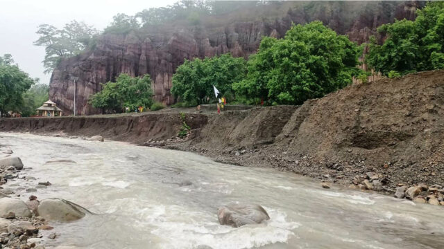 KAPILVASTU: The Banganga river flooded by monsoon rain has posed threats to human settlements in