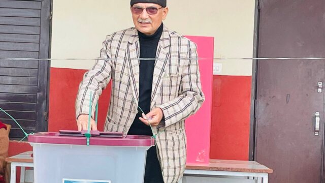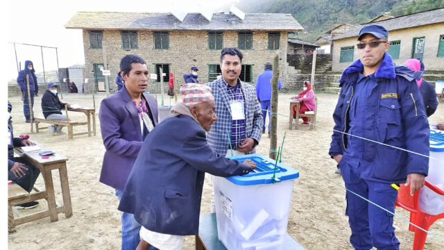 ILAM: Senior leader of Unified Socialist Party Jhalanath Khanal cast vote on Sunday. Khanal cast