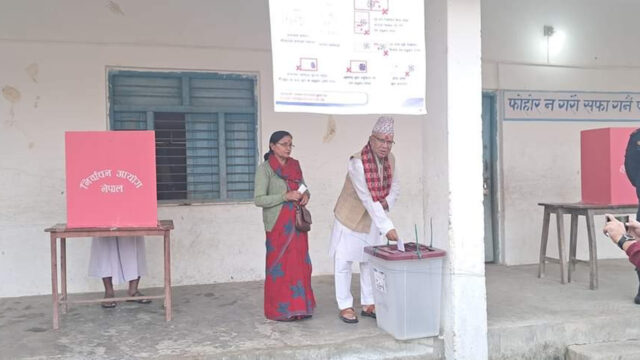 KATHMANDU: Prime Minister and Nepali Congress President Sher Bahadur Deuba cast his vote at the