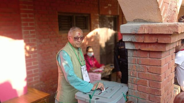 RAUTAHAT: Chairman of Unified Socialist Party Madhav Kumar Nepal cast his vote at Sri Ramjanaki