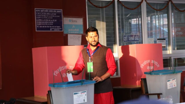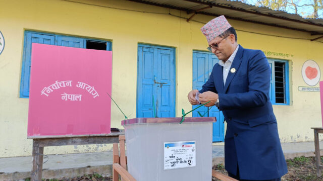 PARBAT: National Assembly Chairperson Ganesh Prasad Timilsina has cast his vote from Pashupati Secondary School