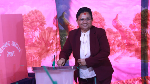 KATHMANDU: Manushi Yami Bhattarai, the candidate of Kathmandu Constituency-7, voted at a polling station at