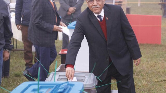 KATHMANDU: Nepali Congress (NC) senior leader Poudel cast his vote on Sunday morning. Poudel cast