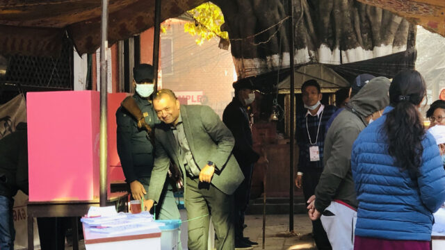 BHAKTAPUR: Chief Election Commissioner Dinesh Kumar Thapaliya cast his vote at 7:00 am at Unique