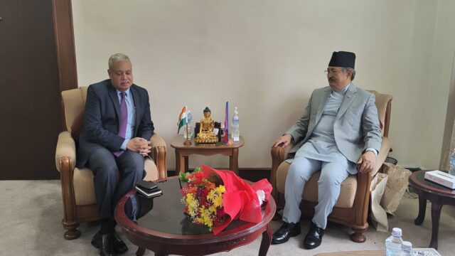 KATHMANDU: Minister for Home Affairs Bal Krishna Khand and Ambassador of India to Nepal, Naveen