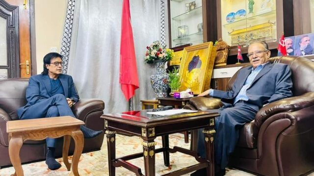 KATHMANDU: Actor Rajesh Hamal on Friday held talks with Maoist Center Chairman Pushpa Kamal Dahal