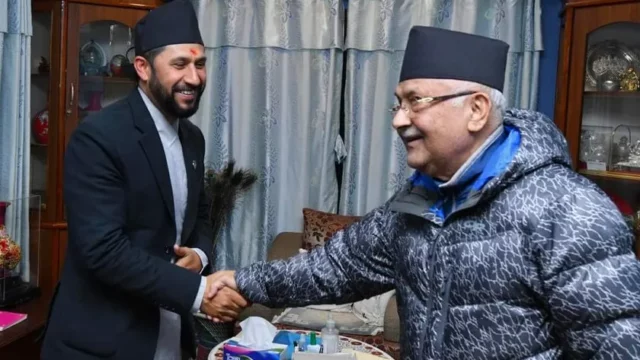 KATHMANDU: Chairman of Rastriya Swatantra Party (RSP) Rabi Lamichhane held talks with CPN-UML Chairperson KP
