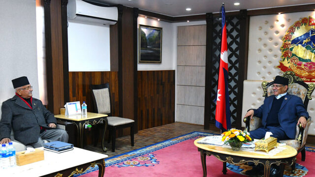 KATHMANDU: Prime Minister Pushpa Kamal Dahal Prachanda and CPN-UML Chairman KP Oli held talks on